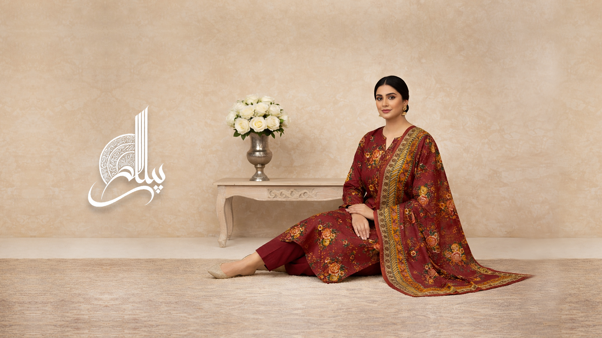 PAYAAM By FARSHA 3PC Fancy Embroidered Lawn Suit β Deep Rust Maroon